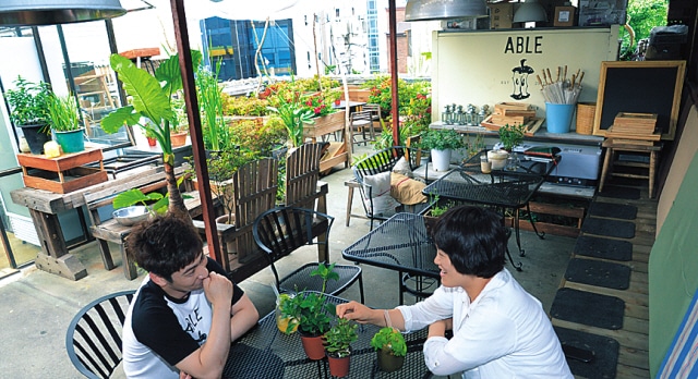 situé dans le quartier ouest de Sindorim, Séoul, Son jardin sur le toit est un endroit à la mode idéal pour des rencontres entre jeunes avec de très nombreux cafés.