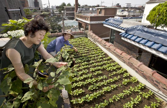 Depuis 2002, le gouvernement de la ville de Séoul a encouragé les propriétaires d’immeubles à créer des jardins sur les toits dans le cadre de son initiative «Green Seoul ».