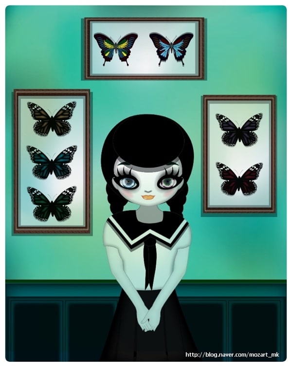 Voici les Eyedoll, ce sont des poupées aux grands yeux de l’illustratrice Mari Kim. Son art s’identifie par le rock, le sensationnel et l’effrayant. C’est une célèbre artiste en Corée, elle a par exemple réalisé la pochette de l’album « I’m the best « du groupe 2NE1.