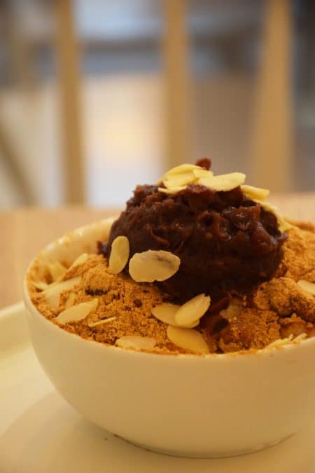 Les desserts en vedette sont : Le FAMEUX BINGSU, qu’on avait tant attendu à Paris ! Il y a différents parfums : Mangue, matcha, fraise et le bingsu injeolmi plus traditionnel.