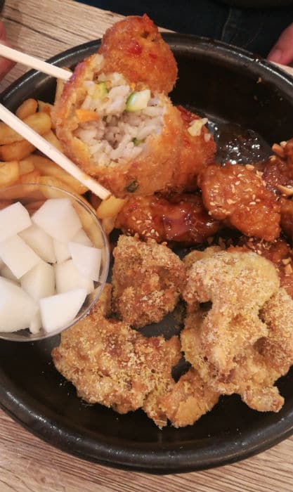 Il y a aussi un menu pour les végétariens, la veggie box, il s’agit de boulette de riz enroulé de panure à l’intérieur c’est un mélange de riz, d’épices et de légumes, un vrai délice !