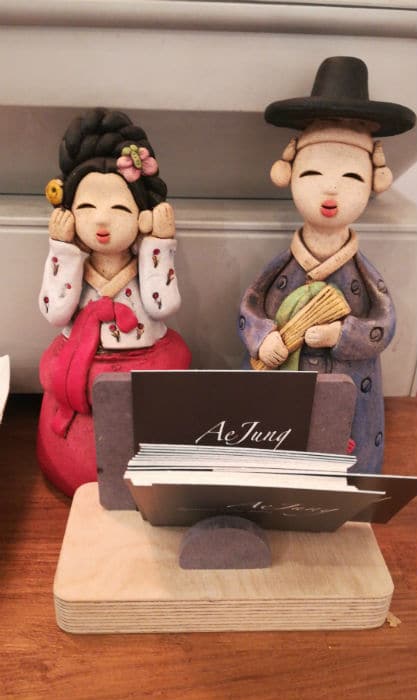 On remarque quelques touches coréennes. Notamment le grand tableau noir derrière la caisse, où il y a dessiné à la craie un joli toit coréen et des onggi, récipients dans lesquels on fermente le kimchi.
