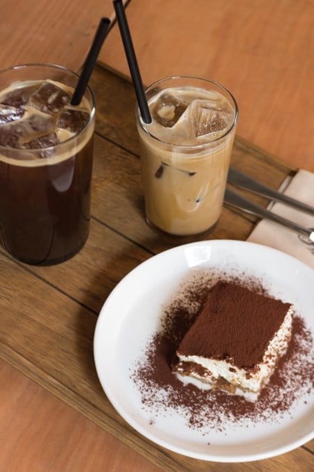Le café propose une variété de cafés populaires (Americano, Ice Latte, …), des thés et sodas ( Yuzu tea, Pink Infusion, Lait au gingembre,…) mais aussi des desserts comme des tiramisus et des cakes aux fruits.
