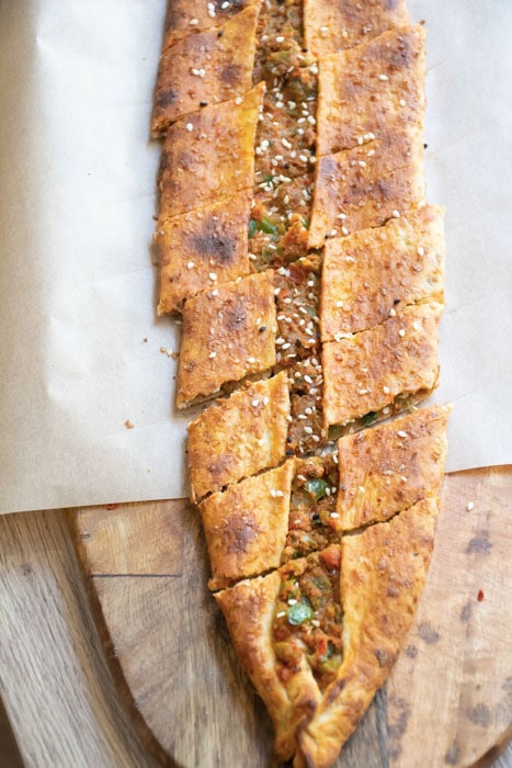 Les pizzas turques appelées PIDE, sont de formes ovales, et peuvent être garnies soit de viande, de fromage ou de légumes !
