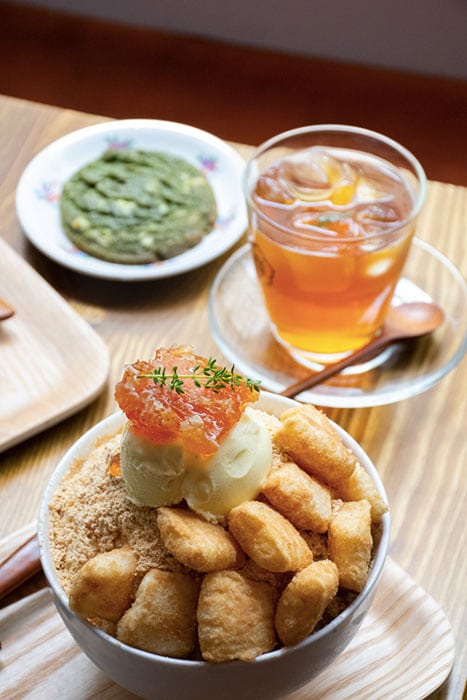 Je recommande bien sûr le Bingsu au thé noir, injeolmi et miel qui est excellent ! Le miel en rayon sur la glace me fait tellement penser aux glaces qu’on mange en Corée du Sud.